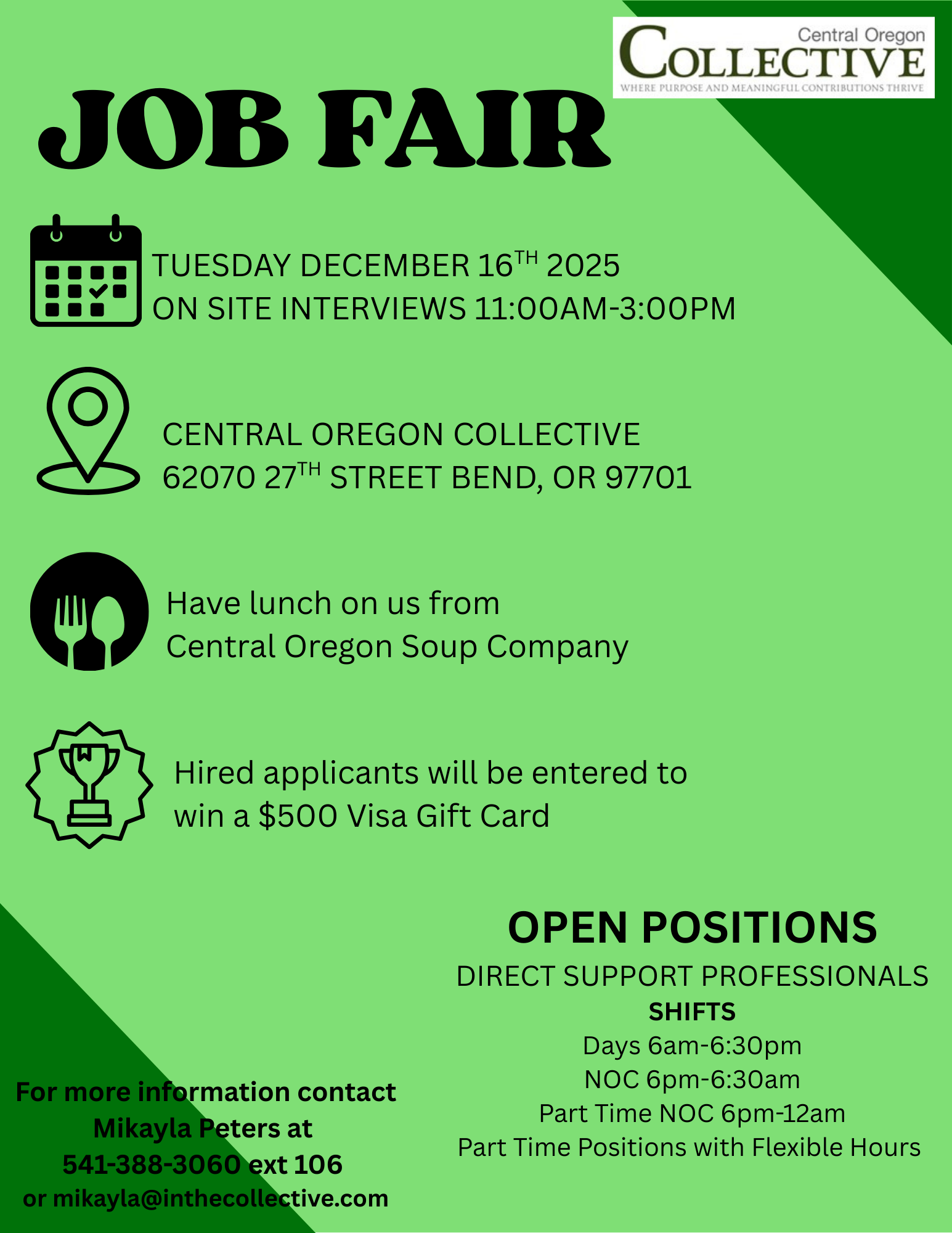 Why settle for just a job when you can spend your work week making a real difference? At Central Oregon Collective, we're all about valuing and supporting our team while creating lasting positive change in our community. We’re hiring for Direct Support roles and various management positions in human services, offering careers where your work truly matters.